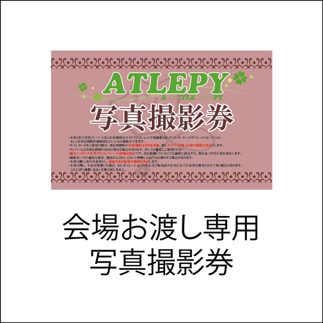 ライブ会場で使用できる写真撮影券。 現場でのクレジット・QR決済ができない場合にご利用ください。 複数枚購入特典 ・5枚同時購入⇒特典券1枚(写真撮影券5枚+特典券1枚) ・10枚同時購入⇒1枚追加(写真撮影券11枚) ご購入時の注意 ※こちらの商品は現場でのお渡しのみとさせて頂きます。 ※お渡しを希望されるタイミングまでに決済・お支払いが完了している事が条件となりますので、後払い・コンビニ払い等をご選択の際は十分ご注意ください。